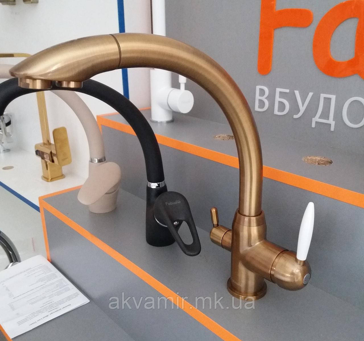 Смеситель для кухни Fabiano FKM 312 Brass-Antique (античная латунь) с подключением к фильтру