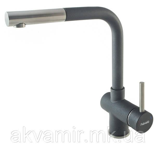 Новинка! Корпус і гусак з нержавіючої сталі (марка SUS304), Покриття - гранітне покриття, колір - чорний. Висувний ніс. Одноважільний, підключення гарячої та холодної води, Високий вилив, економічний аератор Neopearl (Швейцарія), Гнучкі шланги нерж. сталь 40 див., Монтажний отвір 35 мм Керамічний картридж Ф-35 Sedal (Іспанія), Полегшена встановлення, Кріплення-втулка.